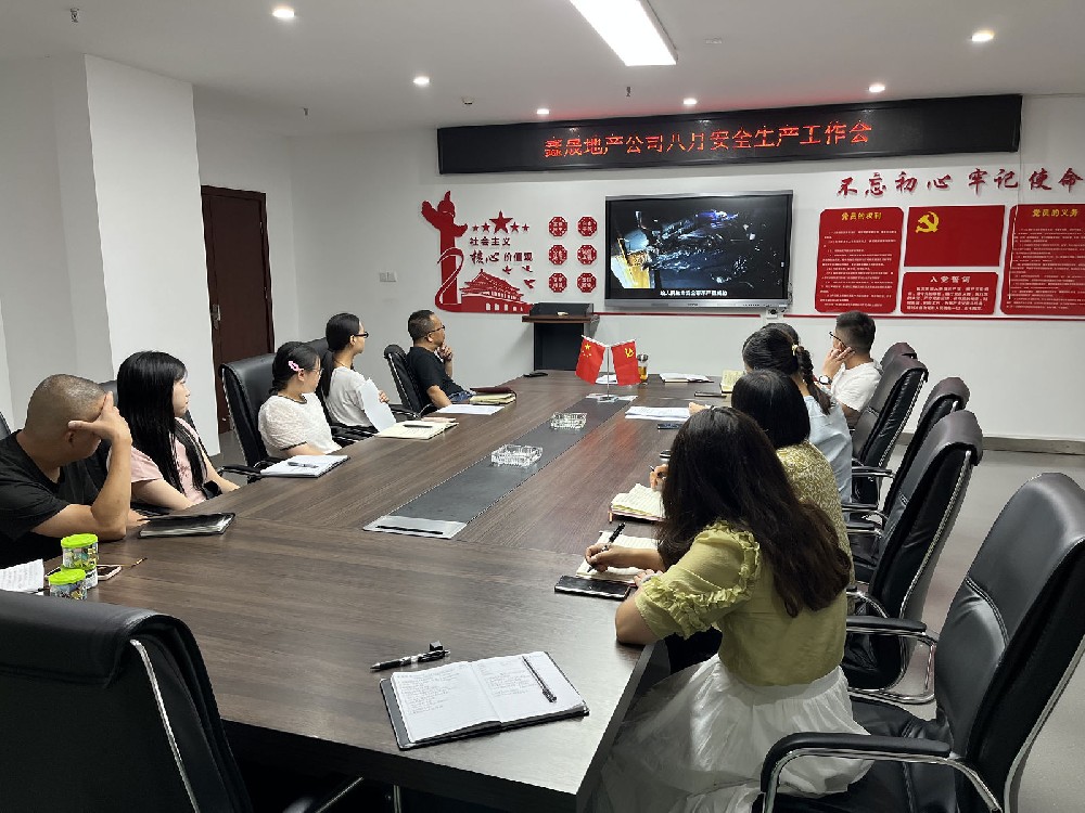 2022年 8 月 24 日,瀘州鑫晟房地產(chǎn)開發(fā)有限公司組織召開八月安全生產(chǎn)工作會,會議由董事長任東財主持,公司全體員工參加。