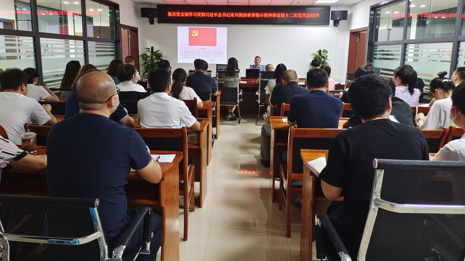 6 月 30 日下午, 機關黨支部組織本部黨員和員工群眾開展慶祝中 國共產(chǎn)黨成立 101 周年主題黨日活動, 活動由黨支部書記聶仕華主持。
