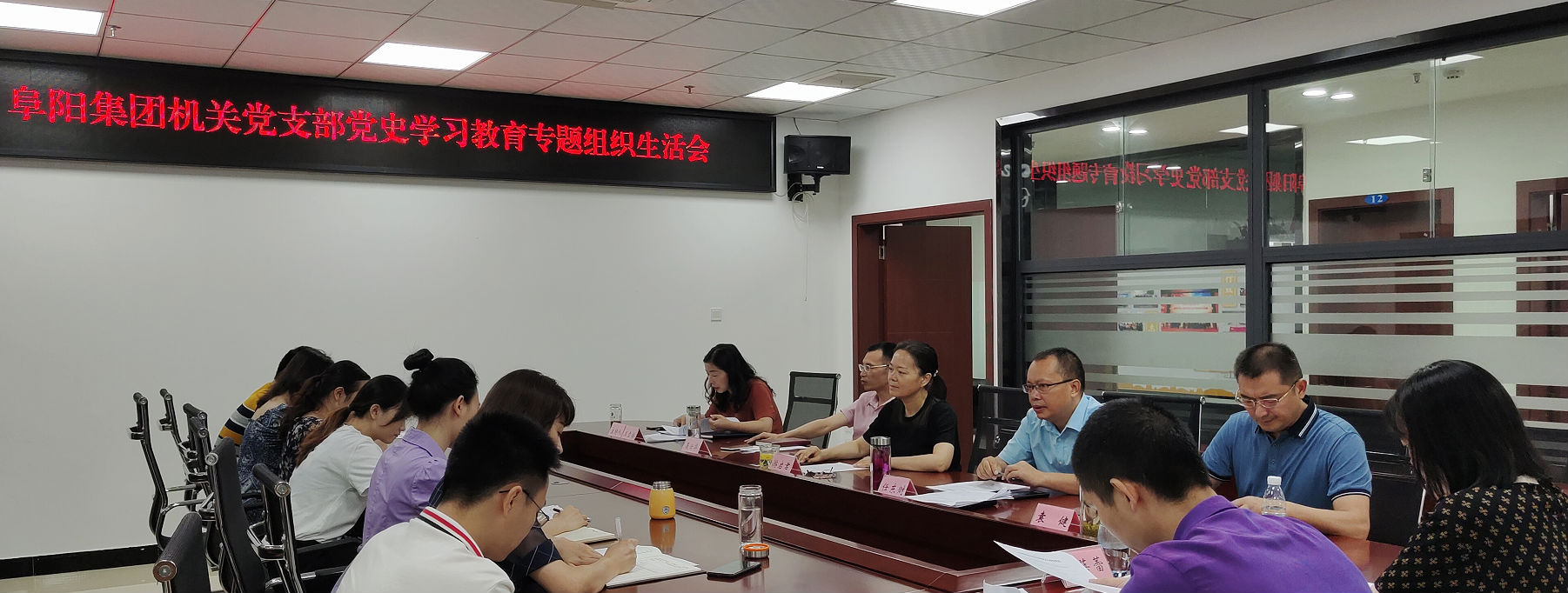 2021年7月28日上午,阜陽(yáng)集團(tuán)機(jī)關(guān)黨支部組織全體黨員召開黨史學(xué)習(xí)教育專題組織生活會(huì),會(huì)議由黨支部書記王雪梅主持,集團(tuán)公司黨委委員、專題組織生活會(huì)督導(dǎo)組成員袁健蒞臨會(huì)議指導(dǎo)。