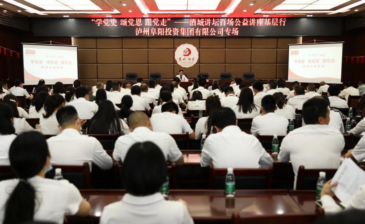 5月19日下午,“學(xué)黨史頌黨恩跟黨走”——酒城講壇百場(chǎng)公益講座基層行瀘州阜陽(yáng)投資集團(tuán)有限公司專場(chǎng)在政...