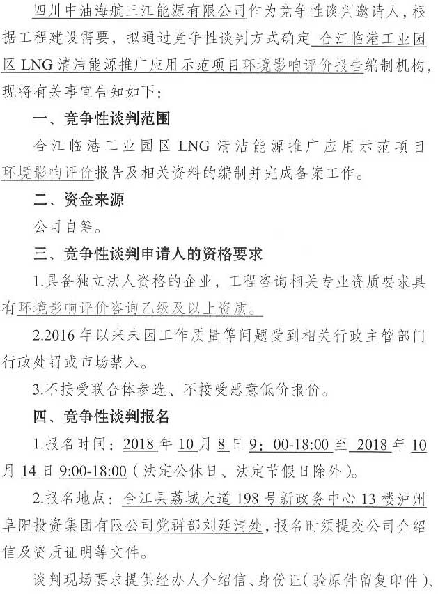合江臨港工業(yè)園區(qū)LNG清潔能源推廣應(yīng)用示范項(xiàng)目環(huán)境影響評(píng)價(jià)單位競(jìng)爭(zhēng)性談判公告.docx