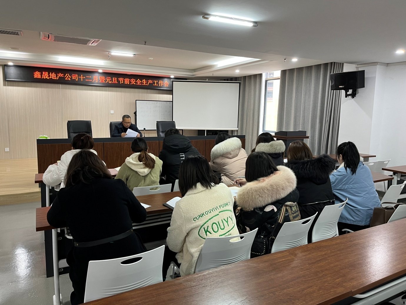 2021年12月27日,瀘州鑫晟房地產(chǎn)開發(fā)有限公司組織召開十二月暨元旦節(jié)前安全生產(chǎn)工作會(huì),會(huì)議由董事長(zhǎng)任東財(cái)主持,公司全體員工參加。
