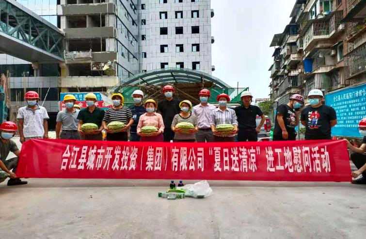炎炎酷暑,天氣持續(xù)高溫,為切實(shí)做好戶外一線職工防暑降溫工作,2021年8月7日,合江縣城市開(kāi)發(fā)投資(集團(tuán))有限公司開(kāi)展“夏送清涼暖人心凝心聚力鼓干勁”活動(dòng),合江縣城市開(kāi)發(fā)投資(集團(tuán))有限公司董事長(zhǎng)兼總經(jīng)理鞠志良、副總經(jīng)理陳磊、工程部部長(zhǎng)陳云峰等領(lǐng)導(dǎo)為高溫下堅(jiān)守我司建筑崗位等戶外一線職工送去夏日清涼,送去公司的關(guān)懷。