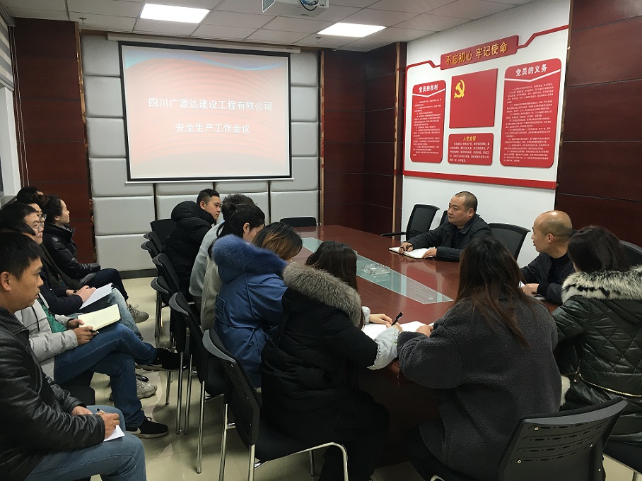 2019年12月31日,四川廣源達建設工程有限公司譙棣升董事長主持召開全體員工安全生產工作會。