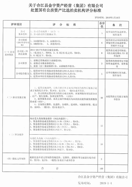 關(guān)于金宇公司處置國(guó)有公房資產(chǎn)比選拍賣機(jī)構(gòu)的公告