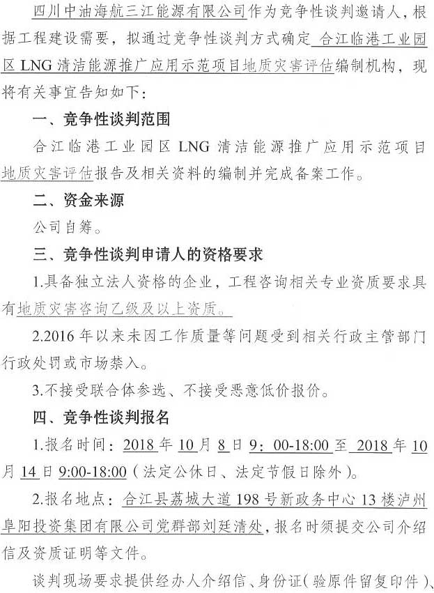 合江臨港工業(yè)園區(qū)LNG清潔能源推廣應(yīng)用示范項(xiàng)目地質(zhì)災(zāi)害評(píng)估單位競(jìng)爭(zhēng)性談判公告.docx
