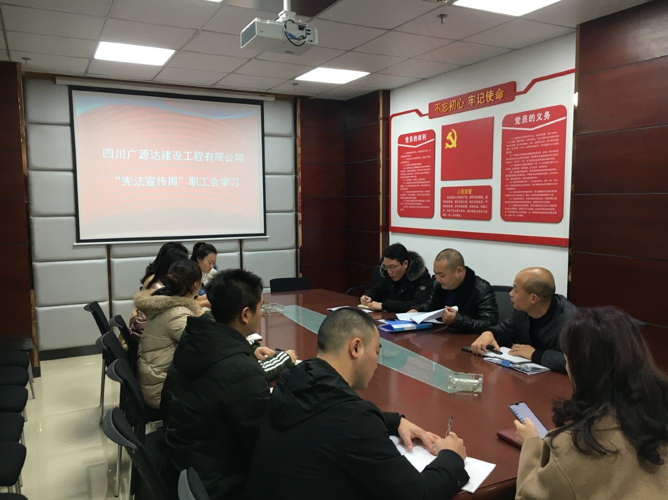 2019年11月3日,四川廣源達建設工程有限公司譙棣升董事長主持召開“憲法宣傳周”職工學習會議,公司全體職工參加。